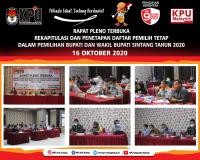 Komisi Pemilihan Umum (KPU) Kabupaten Sintang menggelar simulasi pemungutan dan penghitungan suara, serta penggunaan Sistem Informasi Rekapitulasi (Sirekap) di tingkat Tempat Pemungutan Suara (TPS) dalam Pemilihan Kepala Daerah (Pilkada) Serentak 2020, Sabtu (21/11/2020) di Halaman Indoor Apang Semangai Sintang. Kegiatan tersebut disaksikan oleh KPU Provinsi Kalimantan Barat, Forkopimda Kab. Sintang, KPU Kab. Sekadau, KPU Kab. Sanggau, Bawaslu Kab. Sintang, LO Pasangan Calon, dan Instansi Terkait Kab. Sintang. Simulasi ini layaknya pemilihan di TPS dengan sejumlah logistik pemilihan seperti surat suara, kotak suara, bilik suara, dan lainnya dengan melibatkan PPK, PPS, KPPS dan Pengawas TPS dari Kecamatan Sintang sebagai Petugas Simulasi. KPPS yang bertugas sebagai simulator menggunakan APD yang lengkap sesuai Protokol Kesehatan, dan sebelum memulai pemungutan suara Ketua KPPS melakukan Sumpah kepada Anggota KPPS disaksikan Saksi dan PTS. Kemudian ketua KPPS melakukan pengecekan dan Pembukaan Kotak Suara dan disaksikan seluruh anggota dan saksi. Penerapan protokol kesehatan ini dimulai dari pintu masuk TPS seperti petugas ketertiban menyemprotkan disinfektan ke seluruh ruangan TPS, menjaga jarak saat akan memasuki TPS. Kemudian pemilih diharuskan memakai masker, mencuci tangang pakai sabun kemudian di cek suhu tubuhnya dan diberikan sarung tangan. Setelah masuk TPS pemilih mengisi formulir Model C. Daftar Hadir-KWK (absen) dan KPPS akan mengecek kesesuaian KTP dan formulir Model C.Pemberitahuan-KWK dan dipersilahkan duduk di ruang tunggu yang sudah berjarak. Pemilih yang menunggu tak lama kemudian dipanggil untuk memilih di bilik suara. Kemudian memasukkan surat suara ke kotak suara dan pemilih diberi tinta tetes dijarinya sebagai tanda sudah memilih yang selanjutnya menuju pintu keluar sembari membuang sarung tangan yang diberikan tadi ke kotak sampah, selanjutnya mencuci tangan ditempat yang sudah disediakan. Dalam simulasi itu banyak adegan yang diperagakan. Antara lain, pemeragaan pemilihan di TPS yang sesuai dengan protokol kesehatan. Bahkan dalam simulasi digambarkan bagaimana jika ada pemilih yang sakit atau tiba-tiba pingsan. Bagaimana langkah petugas di lapangan untuk menangani. Ketua KPU Kab. Sintang Hazizah mengatakan simulasi ini mengedukasi petugas penyelenggara bagaimana situasi pemilihan di tengah pandemi Covid-19. Hal ini agar ketika terjun di lapangan mereka sebelumnya punya gambaran apa yang harus dilakukan jika ada masalah. "Sebenarnya tidak ada yang membedakan pemilihan di tengah pandemi atau tidak. Hanya saja kali ini dibarengi dengan protokol kesehatan yang ketat," ucapnya. sementara itu Komisioner KPU Kab. Sintang Sutami menjelaskan, TPS simulasi didesain sama persis dengan TPS pada saat hari H sesuai ketentuan dengan ukuran 8×10 meter plus bilik khusus. Dalam simulasi ini pun dipersiapkan bilik khusus di TPS bagi pemilih yang memiliki suhu tubuh di atas 37,3 derajat celsius. Petugas pun mengenakan baju APD hazmat untuk melayani pemilih dengan suhu di atas 37,3 derajat celsius tersebut. “TPS simulasi akan dibuka sama dengan TPS pada hari H pukul 07.00-13.00 WIB dengan mengundang masyarakat sekitar sesuai DPT dan penyelenggara di tingkat PPK, PPS, KPPS” kata Sutami Selanjutnya Komisioner KPU Provinsi Kalimantan Barat Erwin Irawan juga menjelaskan bahwa simulasi ini untuk menguji kesiapan KPU Kabupaten dalam mengimplementasikan aplikasi Sirekap dan penerapan protokol kesehatan Covid-19 di TPS. Ada banyak reka adegan kemungkinan yang terjadi di lapangan. Seperti, ketika ada pemilih pingsan maka petugas harus memakai baju hazmat dan melakukan pertolongan pertama. Juga diperagakan jika ada pemilih yang bersuhu tinggi, maka yang bersangkutan diarahkan memilih ke bilik khusus. "Begitu juga saat ada pemilih difabel yang meminta pendampingan maka petugas di lapangan dalam hal ini KPPS, harus membantu," jelasnya "Yang membedakan lagi dari pemilihan sebelumnya selain protokol kesehatan adalah pengunaan Sirekap. Aplikasi ini baru digunakan dan sudah diuji coba," jelasnya. Setelah selesai Pemungutan Suara di TPS, dilanjutkan simulasi rekapitulasi suara berbasis aplikasi Sirekap (Sistem Informasi Rekapitulasi Suara). Selain menggunakan Aplikasi Sirekap, KPPS juga harus mengisi Model C.Hasil Salinan-KWK untuk diberikan ke Saksi dan PTPS yang hadir. (Teknis dan Hupmas KPU Sintang).