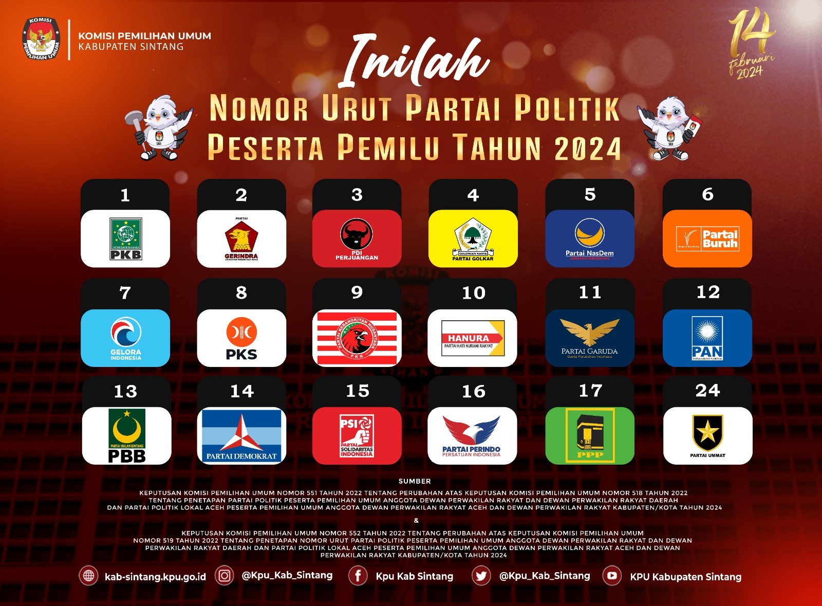 Keputusan Komisi Pemilihan Umum Nomor 552 Tahun 2022 tentang Perubahan atas Keputusan Komisi Pemilihan Umum Nomor 519 Tahun 2022 tentang Penetapan Nomor Urut Partai Politik Peserta Pemilihan Umum Anggota Dewan Perwakilan Rakyat dan Dewan Perwakilan Rakyat Daerah dan Partai Politik Lokal Aceh Peserta Pemilihan Umum Anggota Dewan Perwakilan Rakyat Aceh dan Dewan Perwakilan Rakyat Kabupaten/Kota Tahun 2024