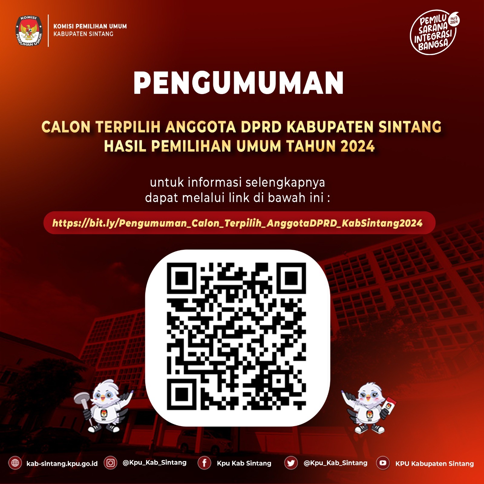 Pengumuman Calon Terpilih Anggota DPRD Kabupaten Sintang Hasil Pemilihan Umum Tahun 2024