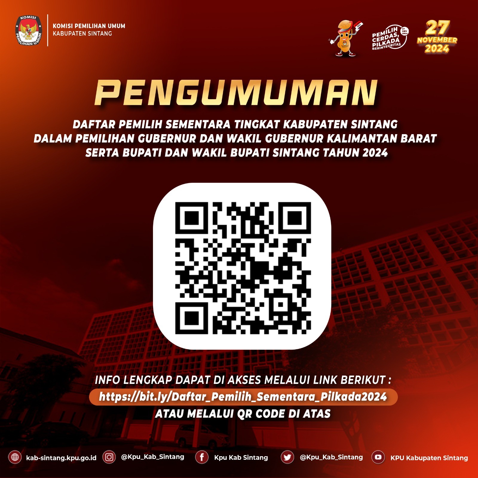 Pengumuman Daftar Pemilih Sementara Tingkat Kabupaten Sintang dalam Pilkada Tahun 2024