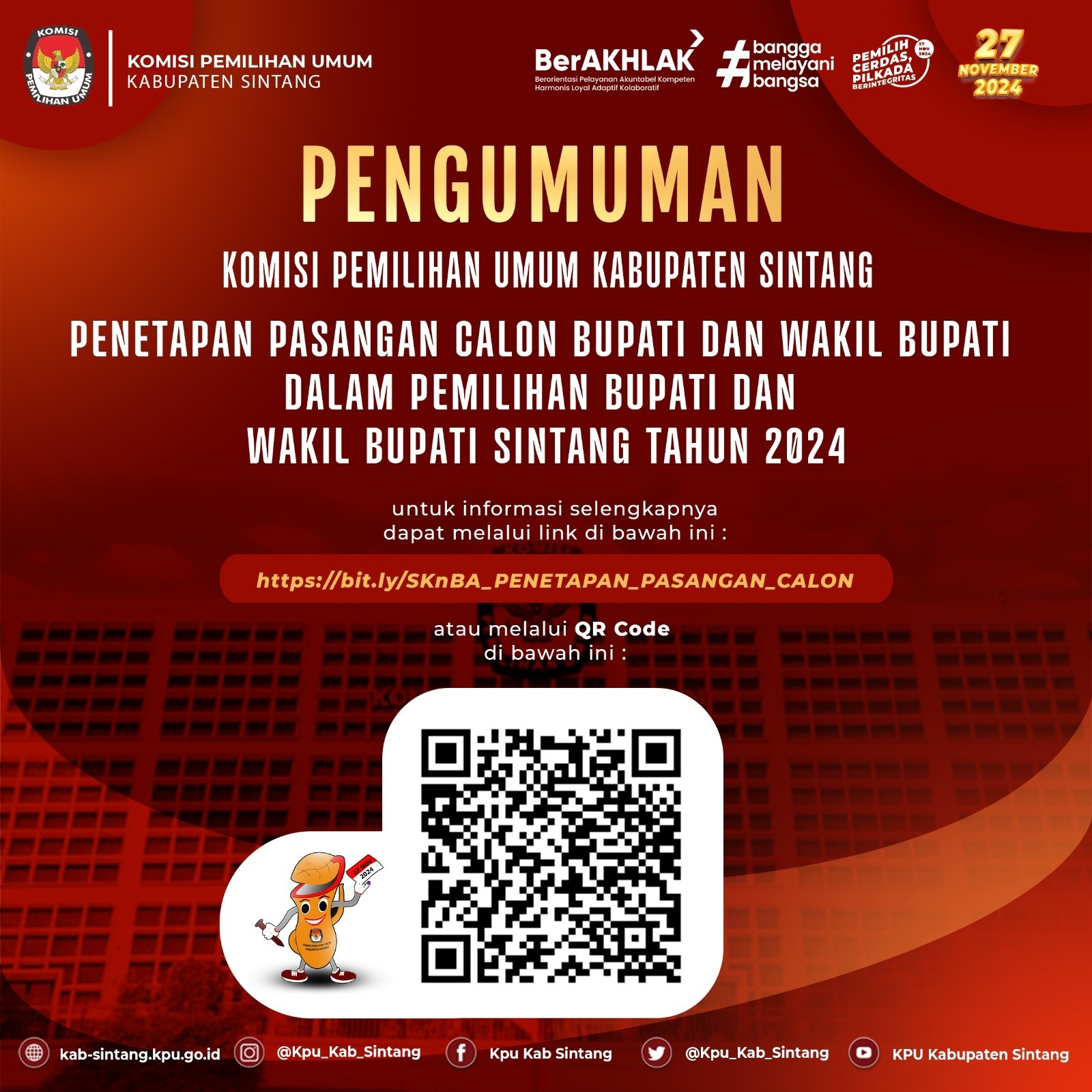 Pengumuman Penetapan Pasangan Calon Bupati dan Wakil Bupati Sintang Dalam Pemilihan Bupati dan Wakil Sintang Tahun 2024