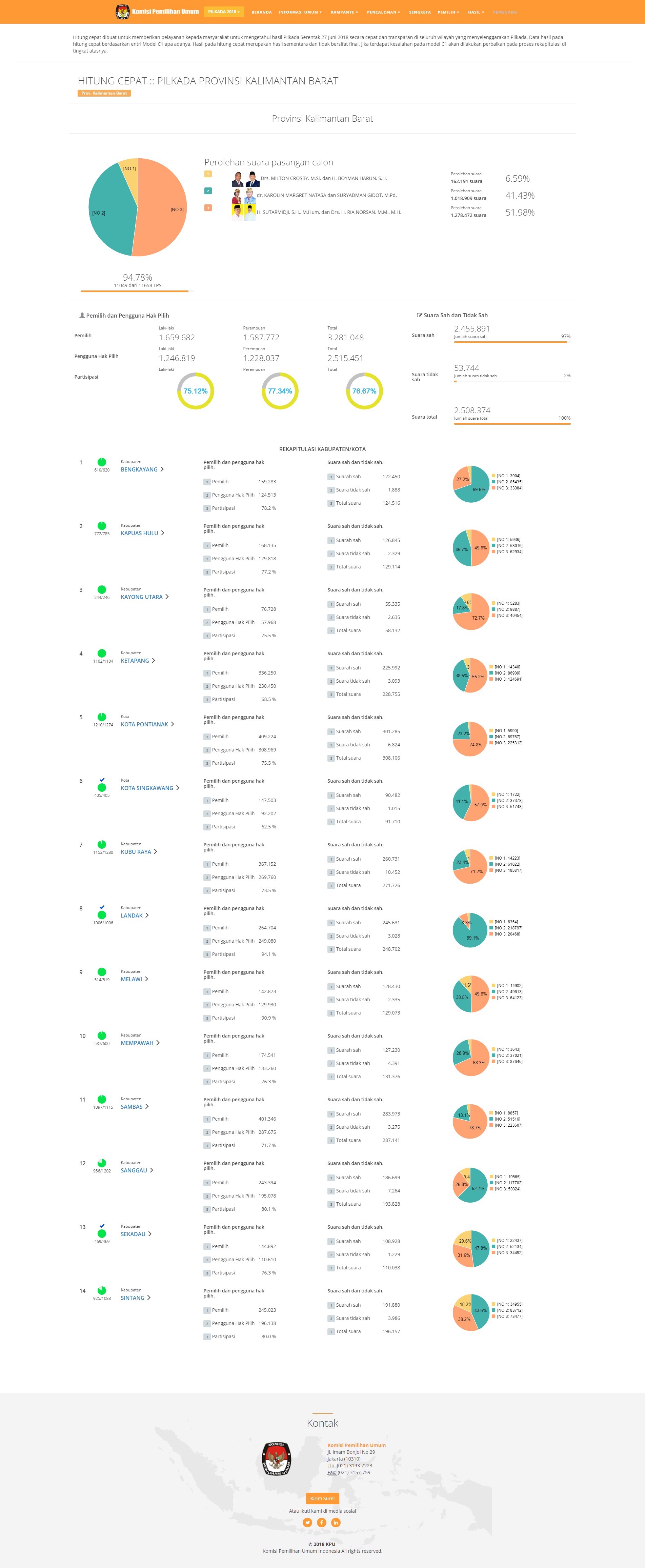 Pilkada serentak 2018 berjalan dengan lancar pada 27 Juni 2018. Pesta demokrasi ini dilakukan secara bersamaan di 17 provinsi, 115 kabupaten dan 39 kota. Komisi Pemilihan Umum (KPU) mengeluarkan hasil perhitungan sementara dalam rangka memberikan pelayanan transparan terhadap publik mengenai hasil penyelenggaraan pilkada. Perhitungan yang dilakukan KPU berdasarkan entri Model C1 apa adanya. Hasil ini merupakan sementara yang belum bersifat final.