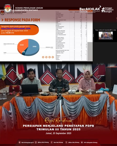 KPU Kabupaten Sintang mengikuti Rapat Koordinasi Persiapan Menjelang Penetapan PDPB Triwulan III Tahun 2025 melalui zoom meeting yang digelar oleh KPU RI.