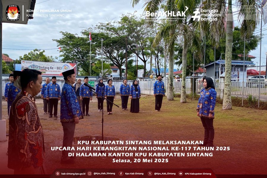 Pagi yang cerah di halaman kantor KPU Kabupaten Sintang pada hari Selasa, 20 Mei 2025 KPU Kabupaten Sintang melaksanakan Peringatan Hari Kebangkitan Nasional ke-177 dengan khidmat. Bertindak sebagai inspektur upacara Sekretaris KPU Kabupaten Sintang Hermanus, hadir pula anggota KPU Kabupaten Sintang Slamet Bowo Santoso dan Karsinah, sedangkan 2 orang lainnya berhalangan hadir. Ketua KPU Kabupaten Sintang Edy Susanto, menghadiri upacara yang diselenggarakan oleh Pemerintah Daerah Kabupaten Sintang, tetapi turut bergabung pula di penghujung rangkaian upacara. Kasubbag Hukum dan SDM kali ini bertugas sebagai komandan upacara, dan seluruh jajaran staf sekretariat hadir lengkap.