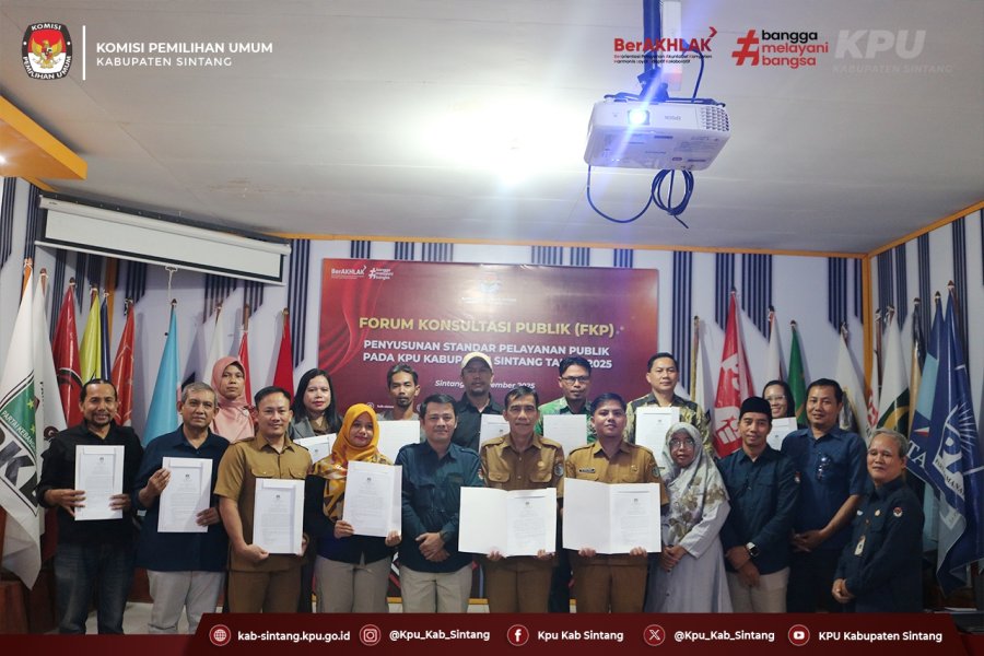 KPU Kabupaten Sintang menggelar Forum Konsultasi Publik (FKP) Penyusunan Standar Pelayanan Publik pada KPU Sintang Tahun 2025 yang bertempat di Aula Media Center KPU Kabupaten Sintang. Selasa (11/11/2025)