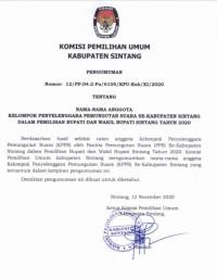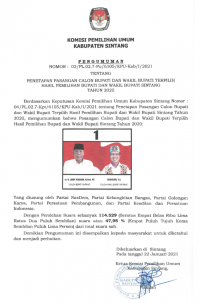 PENETAPAN REKAPITULASI HASIL PENGHITUNGAN SUARA PEMILIHAN BUPATI DAN WAKIL BUPATI SINTANG TAHUN 2020