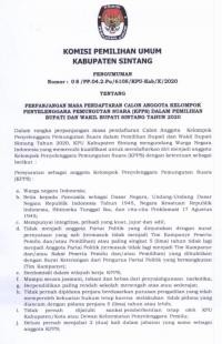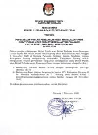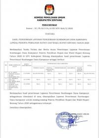 PENGUMUMAN Nomor: 10/PL.02.5-Pu/6105/KPU-kab/X/2020 Tentang Hasil Penerimaan laporan Penerimaan Sumbangan Dana Kampanye (LPSDK) Peserta Pemilihan Bupati dan Wakil Bupati Sintang Tahun 2020 Berdasarkan Tanda Terima dan Berita Acara Penerimaan Laporan Penerimaan Sumbangan Dana Kampanye Peserta Pemilihan Bupati dan Wakil Bupati Sintang Tahun 2020 di KPU Kabupaten Sintang disampaikan hasil penerimaan Laporan Penerimaan Sumbangan Dana kampanye sebagai berikut: NO NAMA PASANGAN CALON WAKTU PENYAMPAIAN SUMBANGAN DANA KAMPANYE TOTAL PRIBADI CALON PARPOL/ GABUNGAN PARPOL PERSEORANGAN KELOMPOK BADAN HUKUM SWASTA 1. Dr. H. JAROT WINARNO,M.Med.PH dan SUDIYANTO, S.H 17.29 WIB Rp. 240.000.000,- Rp.0, Rp.0, Rp.0, Rp.0, Rp. 240.000.000,- 2. Drs. ASKIMAN, M.M. dan Drs. HATTA, M.Si 12.31 WIB Rp.0,- Rp.0, Rp.0, Rp.0, Rp.0, Rp.0, 3. YOHANES RUMPAK, S.Pd., M.M. dan Drs. SYARIFUDDIN, M.M 13.52 WIB Rp.0, Rp.0, Rp.0, Rp.0, Rp.0, Rp.0, Berdasarkan hasil penerimaan Laporan Sumbangan Dana Kampanye sebagaimana dimaksud diatas, disampaikan Laporan Penerimaan Sumbangan Dana Kampanye untuk masing-masing peserta pemilihan Bupati dan Wakil Bupati Sintang Tahun 2020. PENGUMUMAN DAPAT DIUNDUH DI SINI Demikian disampaikan. Sintang, 31 Oktober 2020 Ketua Ttd Hazizah
