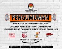 Pengumuman Dokumen Perbaikan Syarat Calon dalam Pemilihan 2020