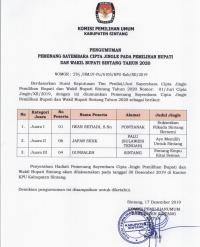 KPU KABUPATEN SINTANG MEMBUKA PENDAFTARAN PESERTA SAYEMBARA LOMBA CIPTA JINGLE PEMILIHAN BUPATI DAN WAKIL BUPATI SINTANG TAHUN 2020. DENGAN TEMA " CIPTA JINGLE UNTUK MENINGKATKAN PARTISIPASI MASYARAKAT DALAM PEMILIHAN BUPATI DAN WAKIL BUPATI SINTANG TAHUN 2020".