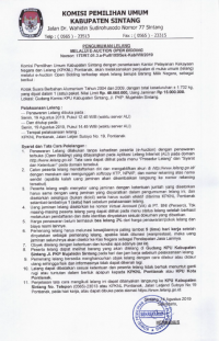 PENGUMUMAN LELANG MELALUI E-AUCTION OPEN BIDDING Nomor: 177/RT.01.3.a-Pu/6105/Sek-Kab/VIII/2019 Komisi Pemilihan Umum Kabupaten Sintang dengan perantaraan Kantor Pelayanan Kekayaan Negara dan Lelang (KPKNL) Pontianak, akan melaksanakan penjualan di muka umum (lelang) melalui e-Auction Open Bidding terhadap objek lelang berupa Barang Milik Negara, sebagai berikut : Kotak Suara Berbahan Alumunium Tahun 2004 dan 2009, dengan total keseluruhan ± 1.702 kg, yang dijual dalam 1 (satu) paket. Nilai Limit Rp. 48.660.000, Uang Jaminan Rp 15.000.000. Lokasi: Gudang Komisi KPU Kabupaten Sintang, Jl. PKP. Mujahidin Sintang. Pelaksanaan Lelang : Penawaran Lelang dibuka pada : Senin, 19 Agustus 2019, Pukul 12.45 WIB (waktu server ALI) Dan ditutup pada : Senin, 19 Agustus 2019, Pukul 14.45 WIB (waktu server ALI) Tempat pelaksanaan lelang : KPKNL Pontianak, Jalan Letjen Sutoyo No. 19, Pontianak Syarat dan Tata Cara Pelelangan : Penawaran Lelang dilakukan tanpa kehadiran peserta (e-Auction) dengan penawaran terbuka (Open Bidding) yang ditayangkan pada Aplikasi Lelang Internet (ALI) pada domain http://www.lelang.go.id/. Tata cara dapat dilihat pada menu “Prosedur Lelang” dan “Syarat dan Ketentuan” pada domain tersebut. Calon peserta lelang mendaftarkan diri dan mengaktifkan akun di http://www.lelang.go.id/ dengan merekam dan mengunggah softcopy KTP, NPWP, dan nomor rekening atas nama sendiri (apabila kalah uang jaminan akan dikembalikan langsung ke nomor rekening tersebut). Peserta lelang wajib menyetor uang jaminan dengan ketentuan jumlah yang disetorkan harus sama dengan uang jaminan yang disyaratkan dalam pengumuman lelang ini, dan disetorkan sekaligus (bukan dicicil) serta harus sudah efektif diterima KPKNL Pontianak selambat-lambatnya 1 (satu) hari sebelum pelaksanaan lelang. Uang jaminan lelang disetorkan ke nomor Virtual Account (VA) di PT. BNI (Persero), Tbk masing-masing peserta lelang yang dapat dilihat pada menu status lelang setelah berhasil melakukan pendaftaran dan data identitas dinyatakan sesuai dokumen yang diberikan. Harga penawaran belum termasuk bea lelang 2% dari harga penawaran/pokok lelang dan biaya resmi lainnya. Pemenang lelang harus melunasi kewajibannya paling lambat 5 (lima) hari kerja setelah dinyatakan sebagai pemenang lelang, apabila tidak dilunasi (wanprestasi), maka uang jaminan seluruhnya akan disetor ke Kas Negara sebagai Pendapatan Jasa Lainnya. Obyek dilelang dengan ketentuan dan kondisi apa adanya (as is). Peserta lelang dapat melihat barang yang akan dilelang di Gudang KPU Kabupaten Sintang Jl. PKP Mujahidin Sintang pada hari dan jam kerja sebelum pelaksanaan lelang. Pemenang lelang bersedia menghancurkan objek lelang dengan cara dilebur atau didaur ulang sehingga fisik dan informasinya tidak dapat dikenali lagi. Lelang dapat dibatalkan sesuai ketentuan dan peserta lelang tidak berhak menuntut ganti rugi atau tuntutan dalam bentuk apapun kepada KPKNL Pontianak atau KPU Kota Pontianak. Penjelasan tata cara mengikuti lelang ini dapat ditanyakan langsung ke KPU Kabupaten Sintang No. Telepon (0565)-23513 atau KPKNL Pontianak, Jalan Letjend Sutoyo No.19 Pontianak, pada hari kerja, atau dapat dibuka pada alamat https://www.lelang.go.id. Sintang, 14 Agustus 2019 Sekretaris, ttd HERMANUS Pengumuman Lelang download disini