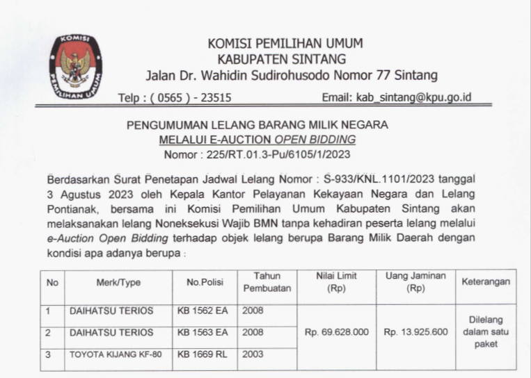 b. kantor KPU Kabupaten Sintang dengan alamat